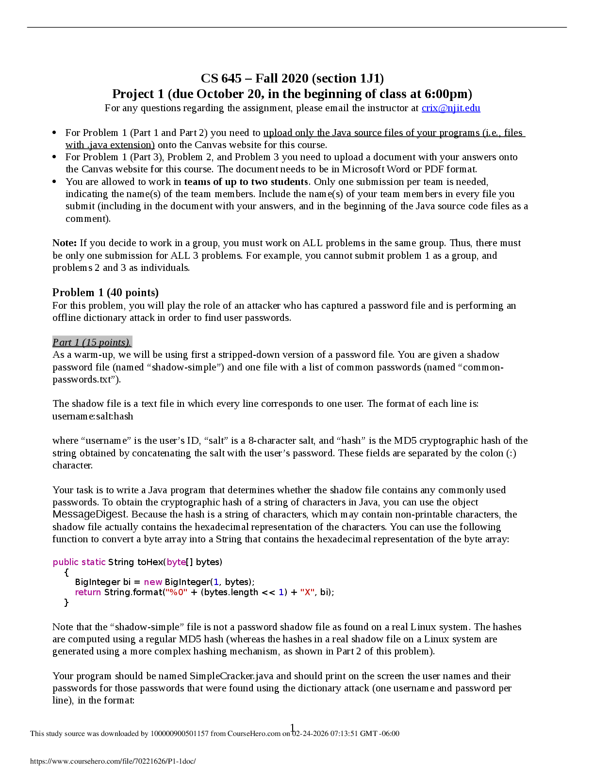 Programming > ASSIGNMENT > CS 645 Security and Privacy in Computer Systems Project 1 Assignment