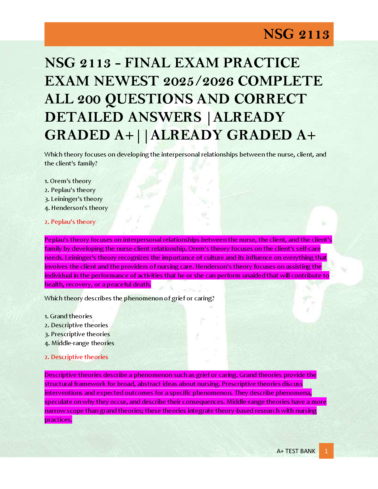 *NURSING > EXAM > NSG 2113 - FINAL EXAM PRACTICE EXAM NEWEST 2025/2026 COMPLETE ALL 200 QUESTIONS AND CORRECT DETAILED ANSWERS |ALREADY GRADED A+||ALREADY GRADED A+