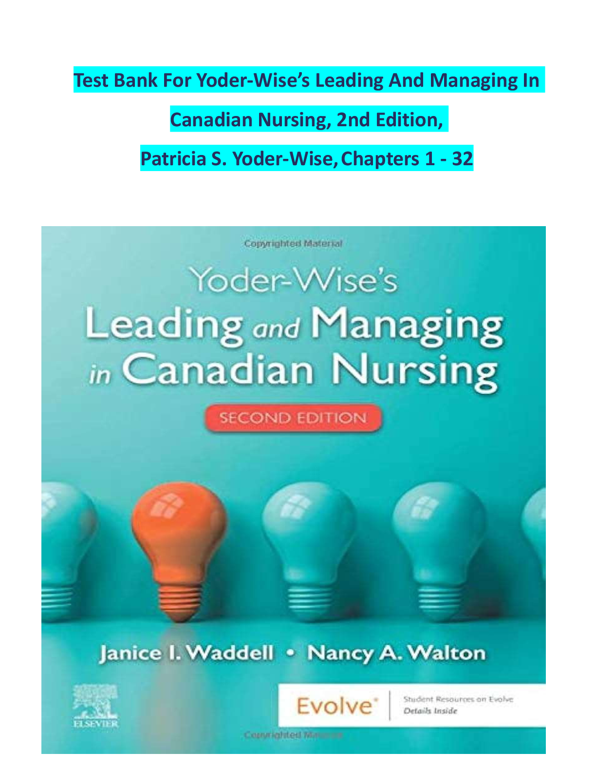 > Test Bank for Yoder-Wise‘s Leading and Managing in Canadian Nursing, 2nd Edition by Yoder-Wise, Waddell & Walton | ISBN: 9781771721677 | Complete Chapters 1-32 | Questions & Answers | Downloadable PDF