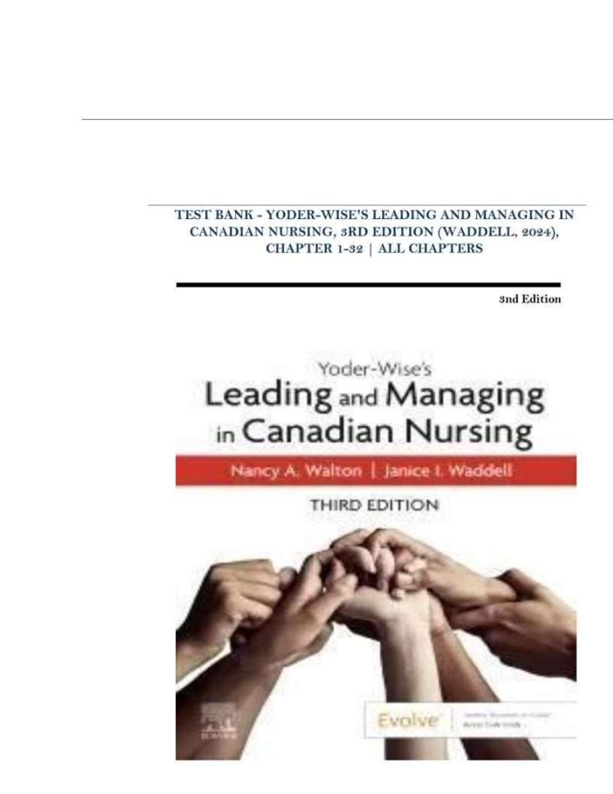 > Test Bank for Yoder-Wise's Leading and Managing in Canadian Nursing 3rd Edition by Nancy Walton and Janice Waddel Complete All Chapters 1-32! ALREADY RATED A+ 100% CORRECT ANSWERS