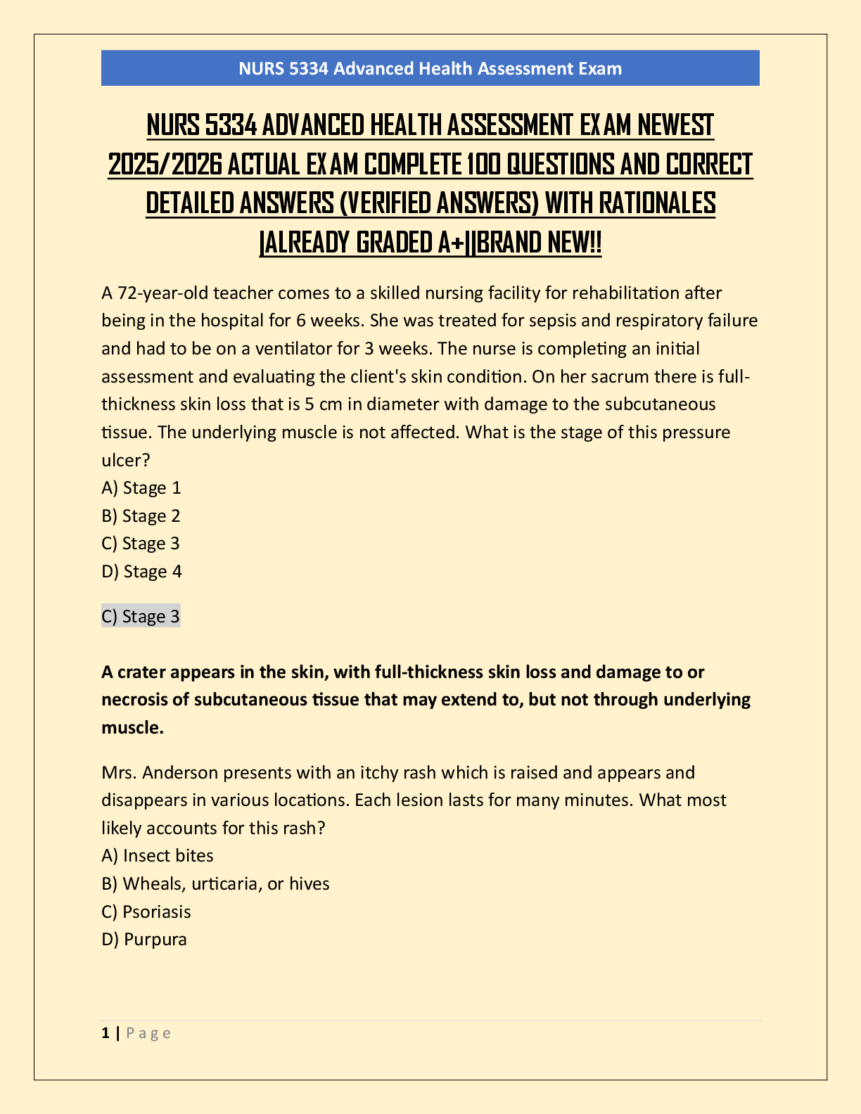 *NURSING > EXAM > NURS 5334 ADVANCED HEALTH ASSESSMENT EXAM NEWEST 2025/2026 ACTUAL EXAM COMPLETE 100 QUESTIONS AND CORRECT DETAILED ANSWERS (VERIFIED ANSWERS) WITH RATIONALES |ALREADY GRADED A+||BRAND NEW!!