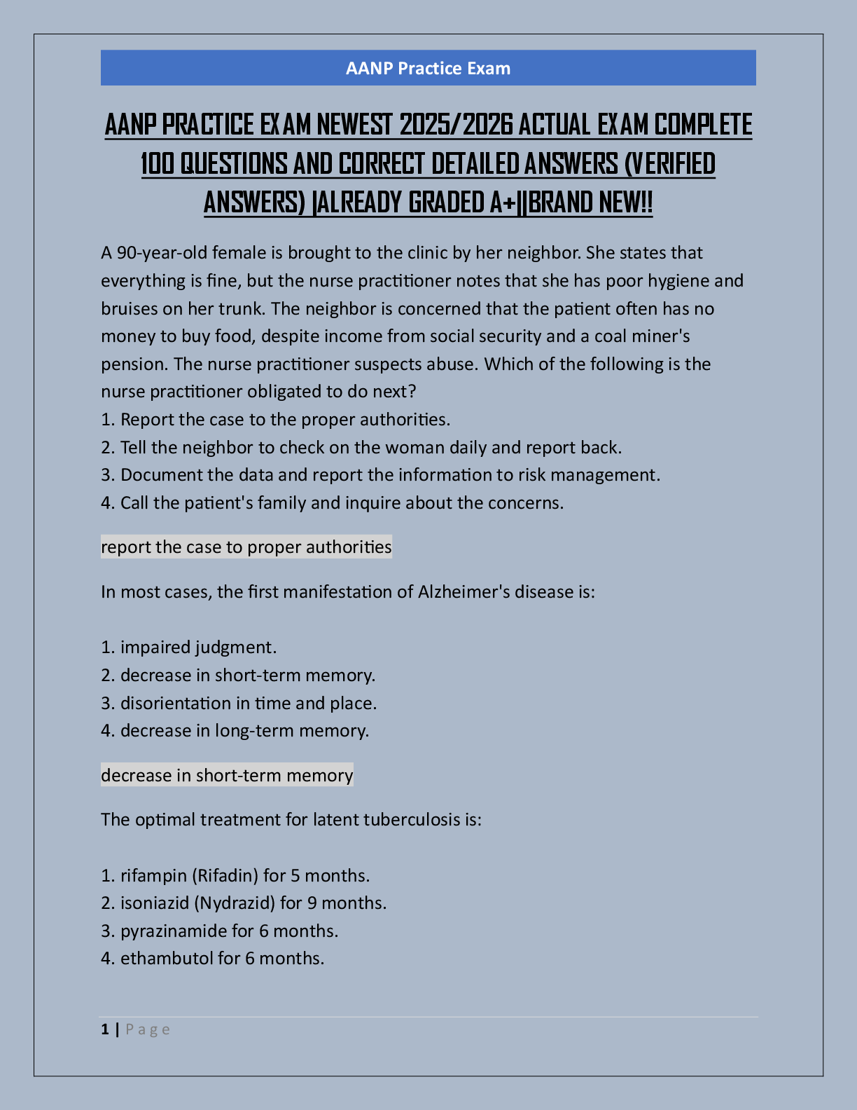 Medicine > EXAM > AANP PRACTICE EXAM NEWEST 2025/2026 ACTUAL EXAM COMPLETE 100 QUESTIONS AND CORRECT DETAILED ANSWERS (VERIFIED ANSWERS) |ALREADY GRADED A+||BRAND NEW!!