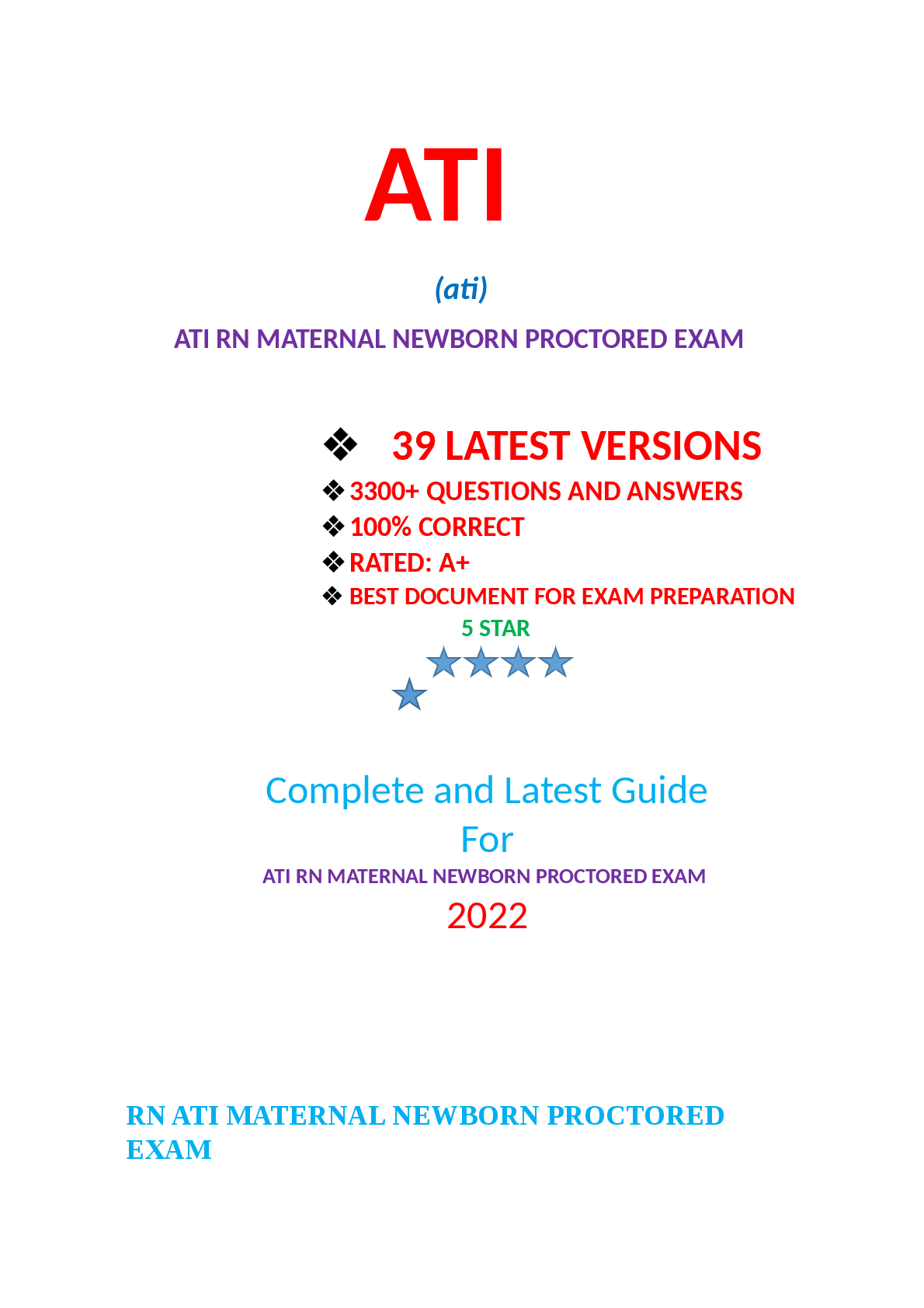 *NURSING > EXAM > ATI RN MATERNAL NEWBORN PROCTORED EXAM