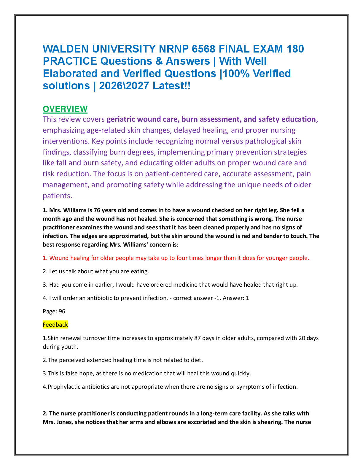 NRNP 6568 Synthesis In Advanced Nursing > EXAM REVIEW > WALDEN UNIVERSITY NRNP 6568 FINAL EXAM 180 PRACTICE Questions & Answers | With Well Elaborated and Verified Questions |100% Verified solutions | 2026\2027 Latest!!