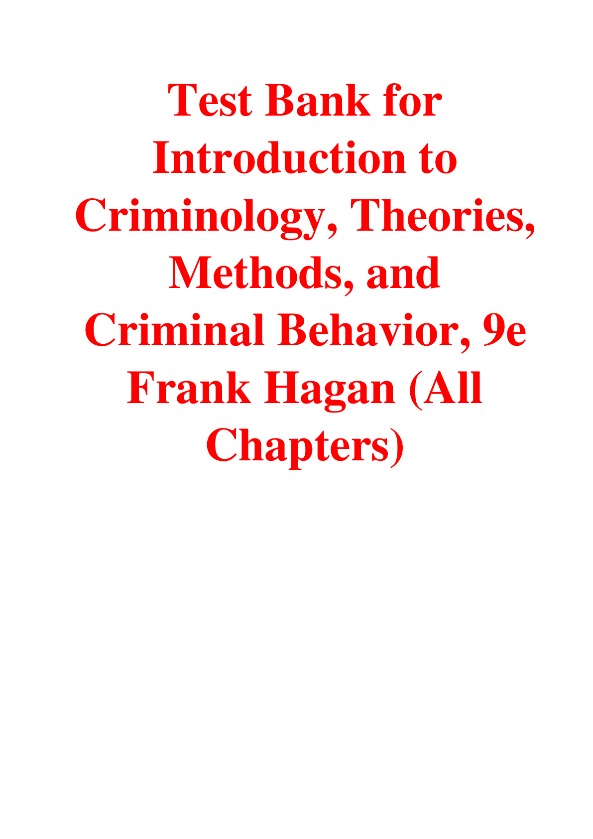 Criminology > TEST BANKS > Test Bank for Introduction to Criminology, Theories, Methods, and Criminal Behavior, 9th Edition by Frank Hagan (All Chapters) A+ Latest