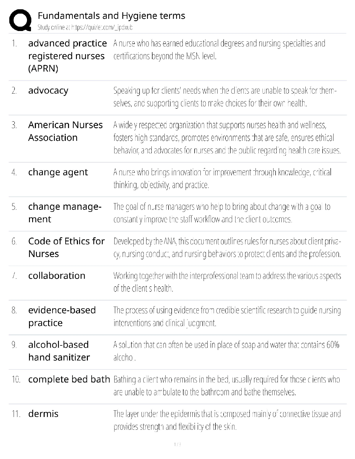 *NURSING > QUESTIONS & ANSWERS > Fundamentals and Hygiene Terms / Score 100% / 2025 New Version