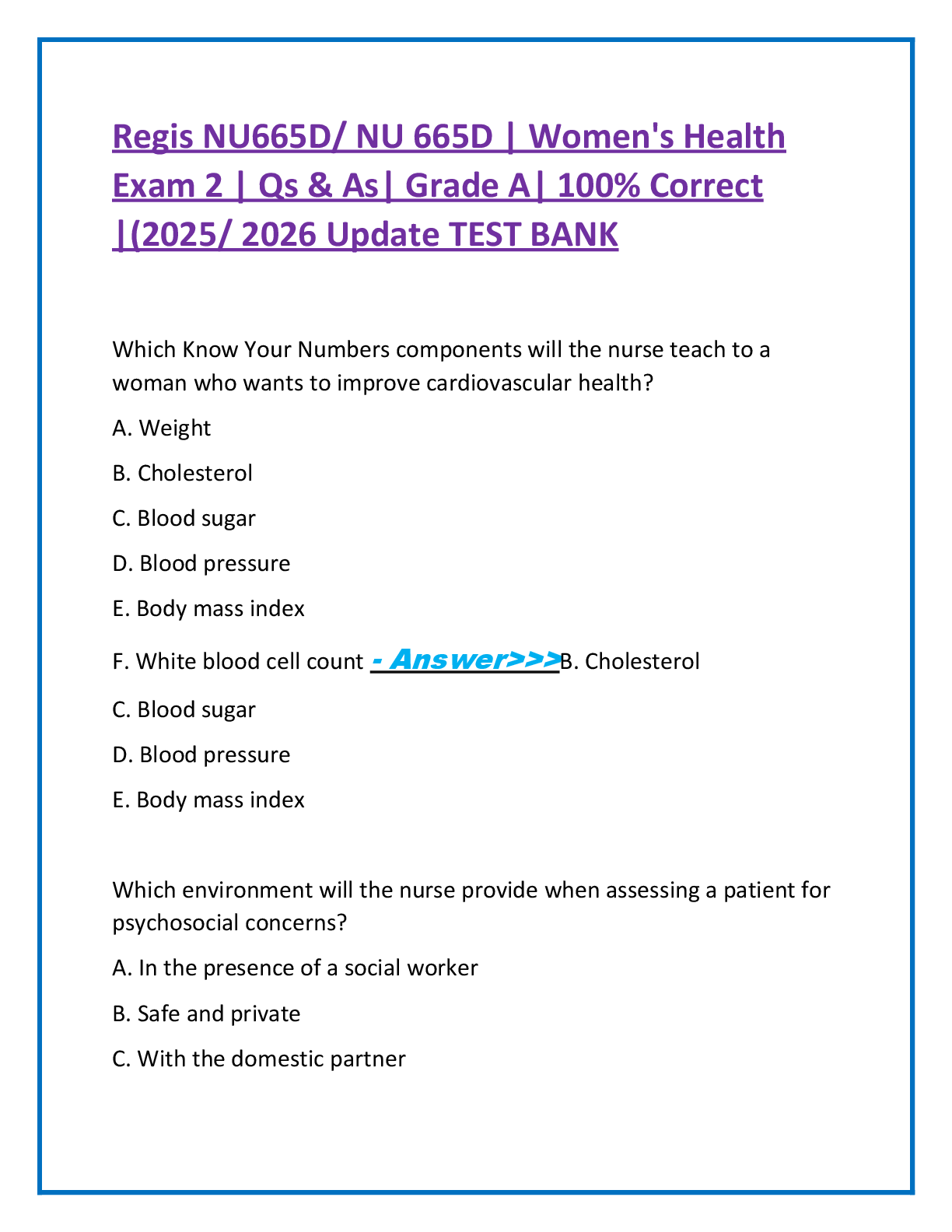 *NURSING > FINAL EXAM > Regis NU665D/ NU 665D | Women's Health Exam 2 | Qs & As| Grade A| 100% Correct |(2025/ 2026 Update TEST BANK