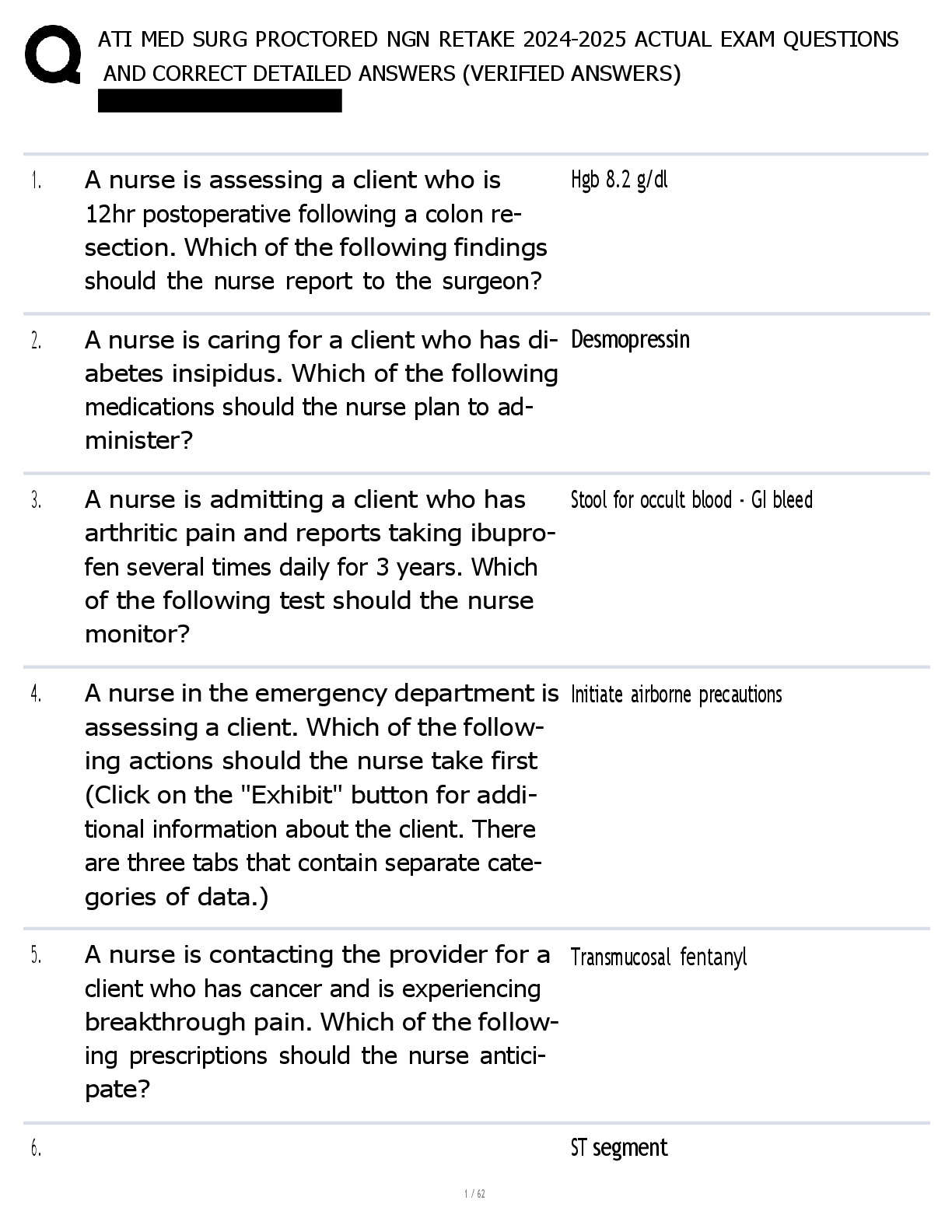 *NURSING > QUESTIONS and ANSWERS > ATI MED SURG PROCTORED NGN RETAKE 2024-2025 ACTUAL EXAM QUESTIONS AND CORRECT DETAILED ANSWERS (VERIFIED ANSWERS)