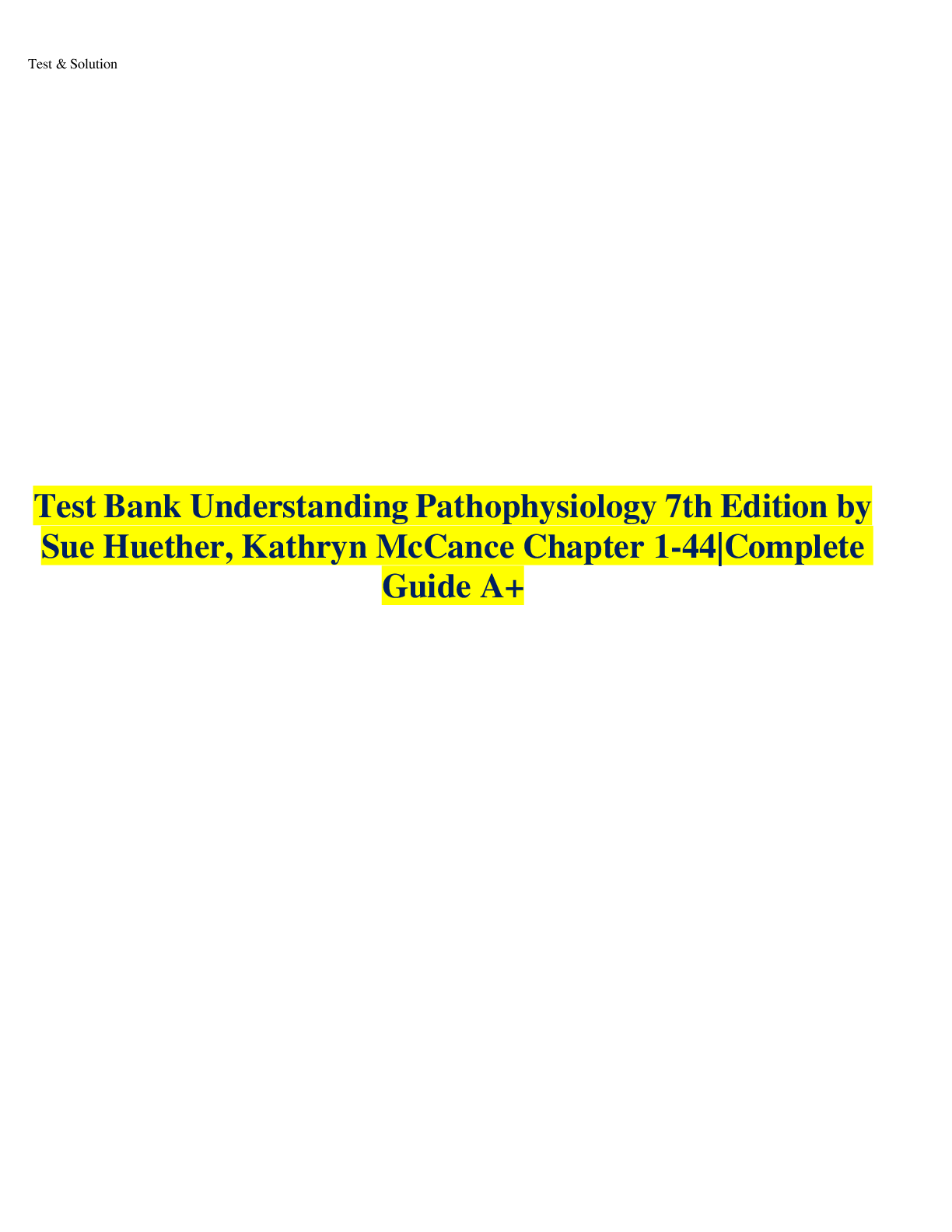 Pathophysiology > TEST BANKS > Test Bank Understanding Pathophysiology 7th Edition by Sue Huether, Kathryn McCance Chapter 1-44|Complete Guide A+