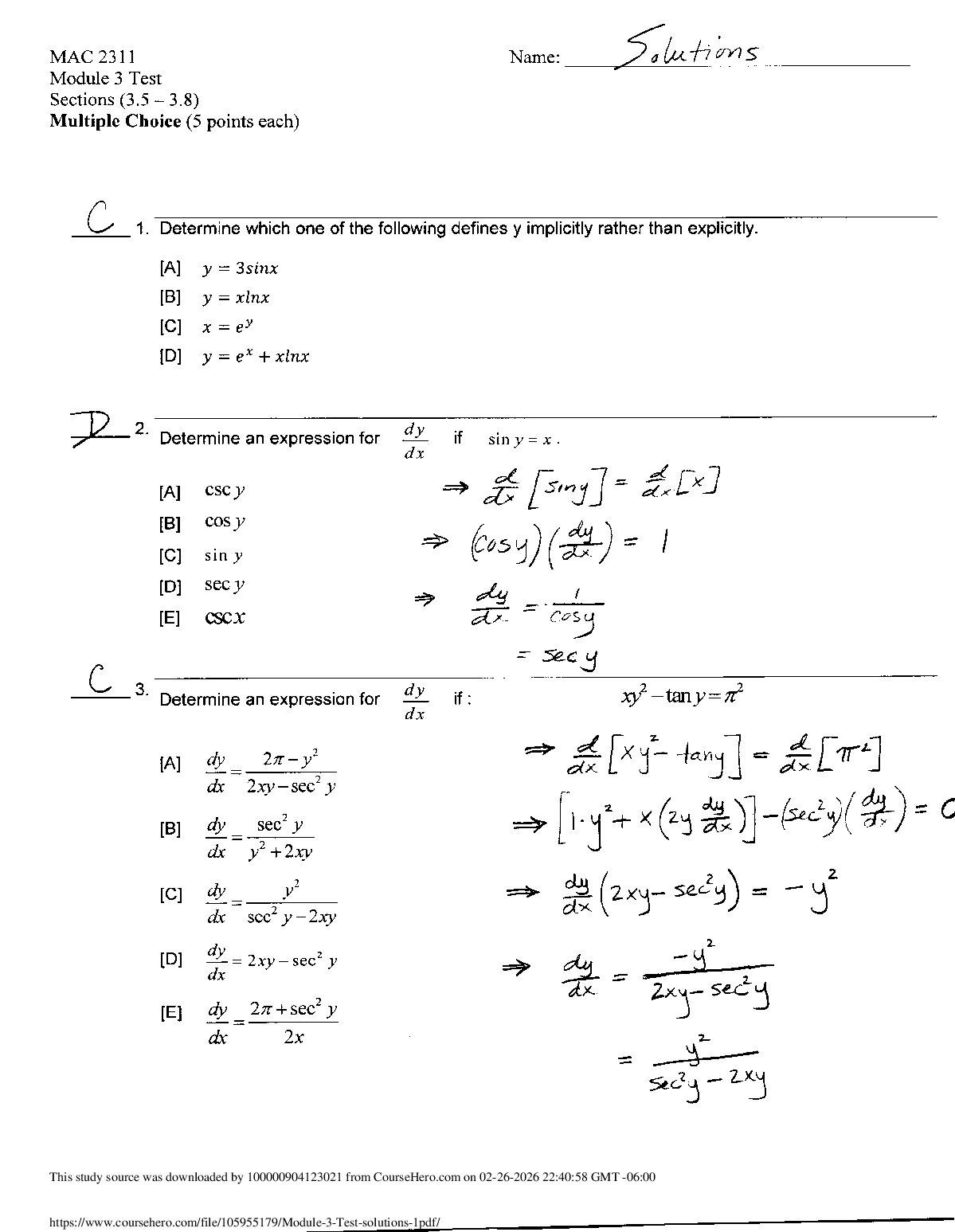 Mathematics > SOLUTIONS > MAC 2311 Calculus with Analytic Geometry I Module 3 Test SOLUTIONS