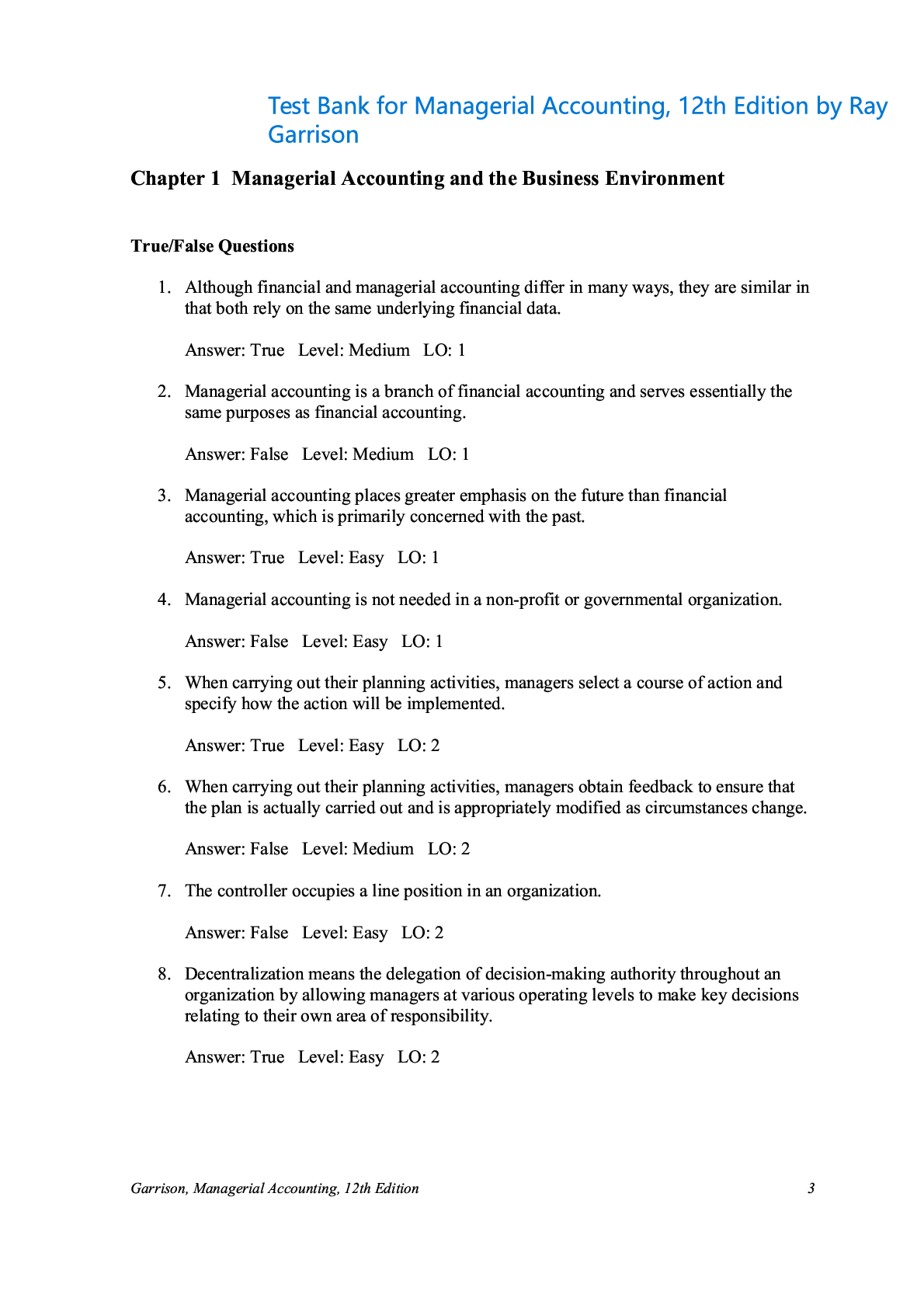 Accounting > TEST BANKS > Test Bank for Managerial Accounting 12th Edition by Garrison, Noreen & Brewer | Verified Questions & Answers | Complete Chapters | Downloadable PDF