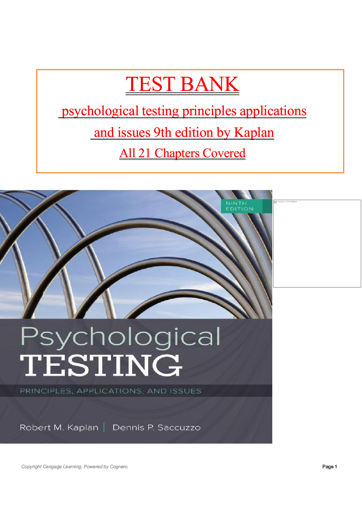 Applied Psychology > TEST BANKS > Test Bank for Psychological Testing: Principles, Applications, and Issues 9th Edition by Kaplan & Saccuzzo | All 21 Chapters | Verified Questions & Answers | Downloadable PDF