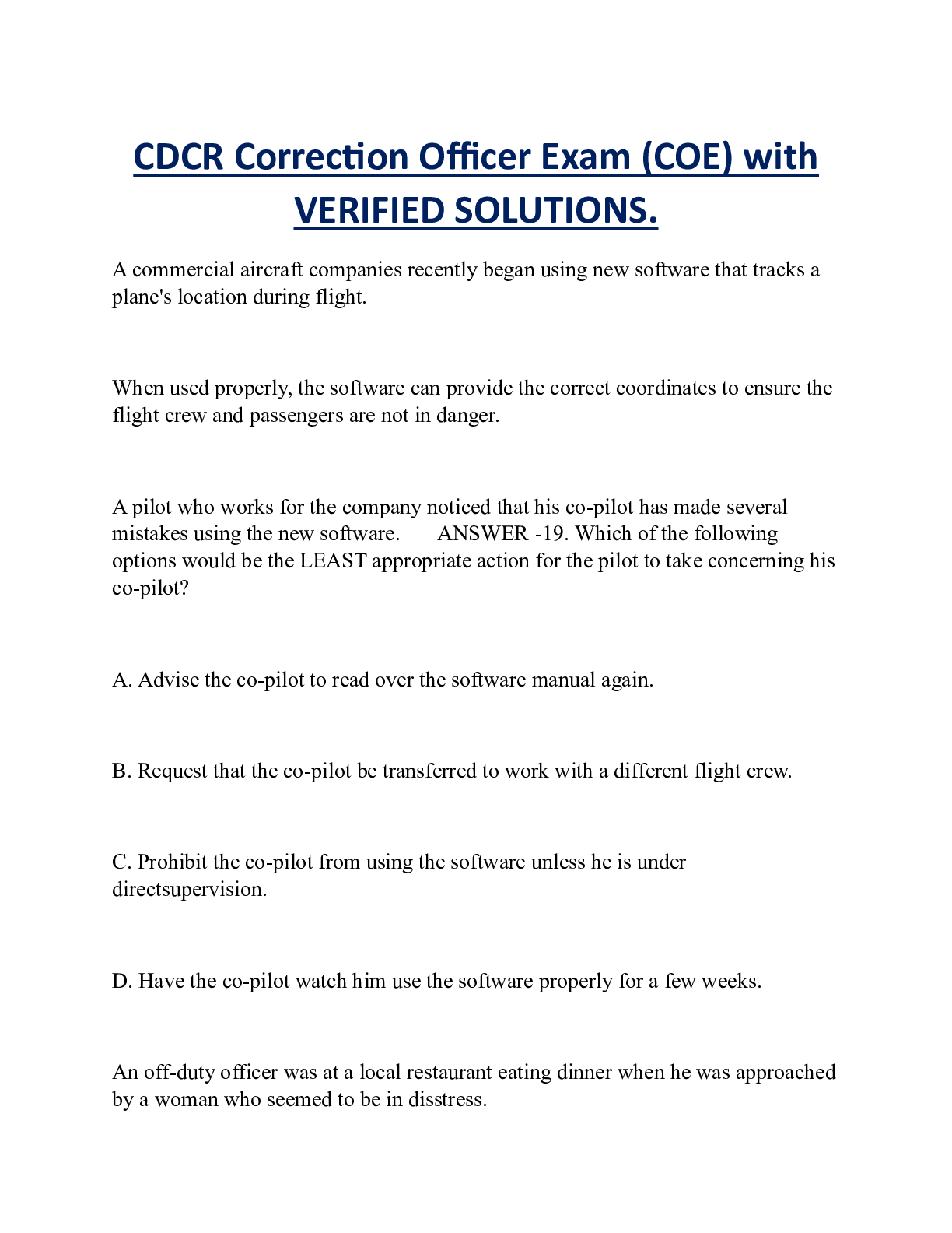 *NURSING > EXAM > CDCR Correction Officer Exam (COE) with VERIFIED SOLUTIONS.