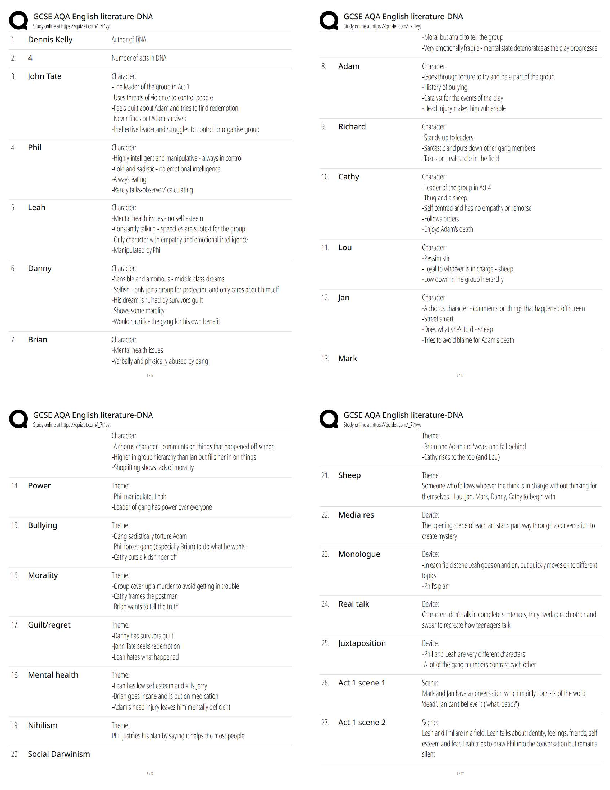 English > QUESTIONS & ANSWERS > GCSE AQA English Literature – DNA / Score 100% / New Version / 2025 Update Study Guide