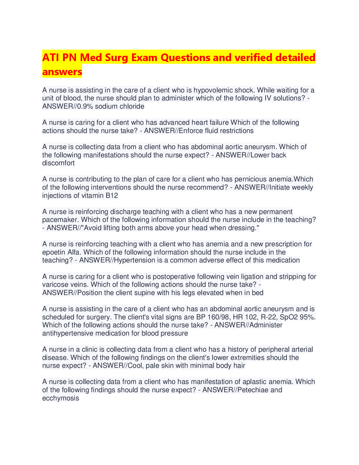 ATI Med Surg > A-Level Question Paper > ATI PN Med Surg Exam Questions: Verified Detailed Answers & Rationales | Practical Nursing Study Guide