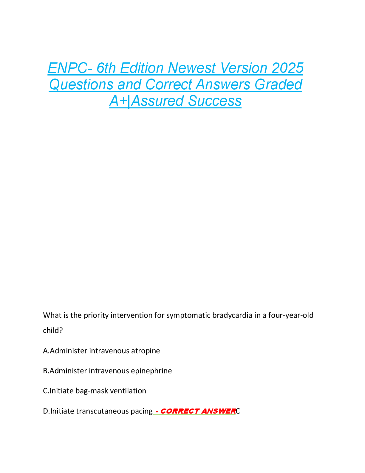 *NURSING > EXAM > ENPC- 6th Edition Newest Version 2025 Questions and Correct Answers Graded A+|Assured Success
