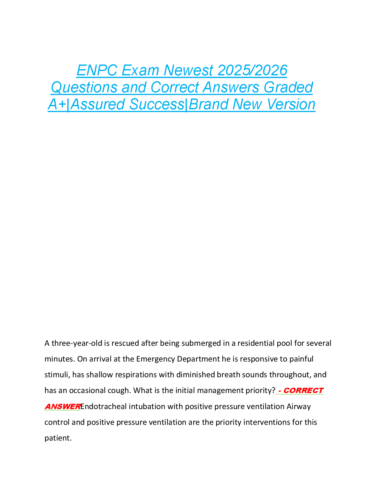 *NURSING > EXAM > ENPC Exam Prep / Exam Questions Newest 2025/2026 Questions and Correct Answers Graded A+|Assured Success