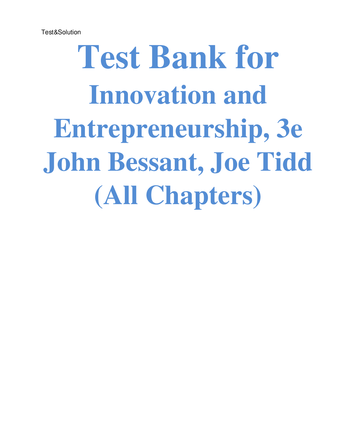 Enterprise Law > TEST BANKS > Test Bank for Innovation and Entrepreneurship, 3e John Bessant, Joe Tidd (All Chapters)
