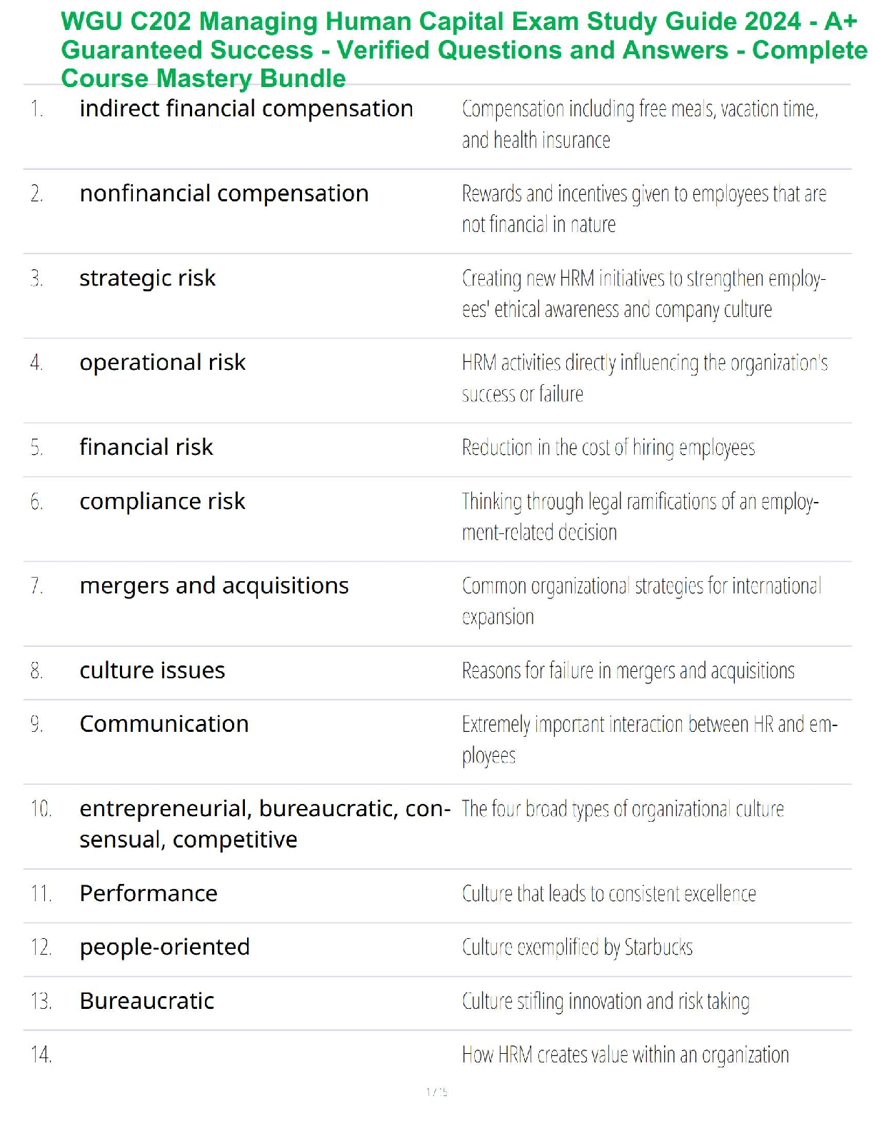 Business Management > QUESTIONS & ANSWERS > WGU C202 Managing Human Capital Exam Study Guide 2024 - A+ Guaranteed Success - Verified Questions and Answers - Complete Course Mastery Bundle