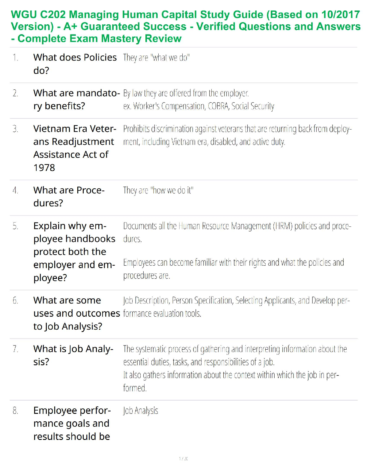 Business Management > QUESTIONS & ANSWERS > WGU C202 Managing Human Capital Study Guide (Based on 10/2017 Version) - A+ Guaranteed Success - Verified Questions and Answers - Complete Exam Mastery Review