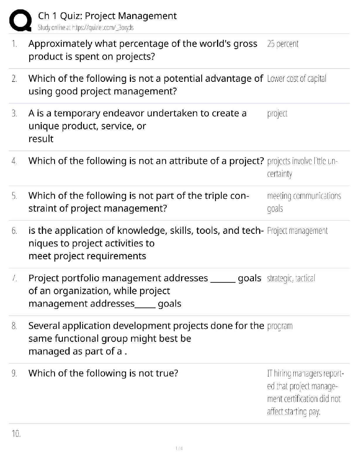 Project Management > QUESTIONS & ANSWERS > Chapter 1 Quiz Project Management / 2026 PMP Study Guide / CAPM Exam Prep / Score 100%