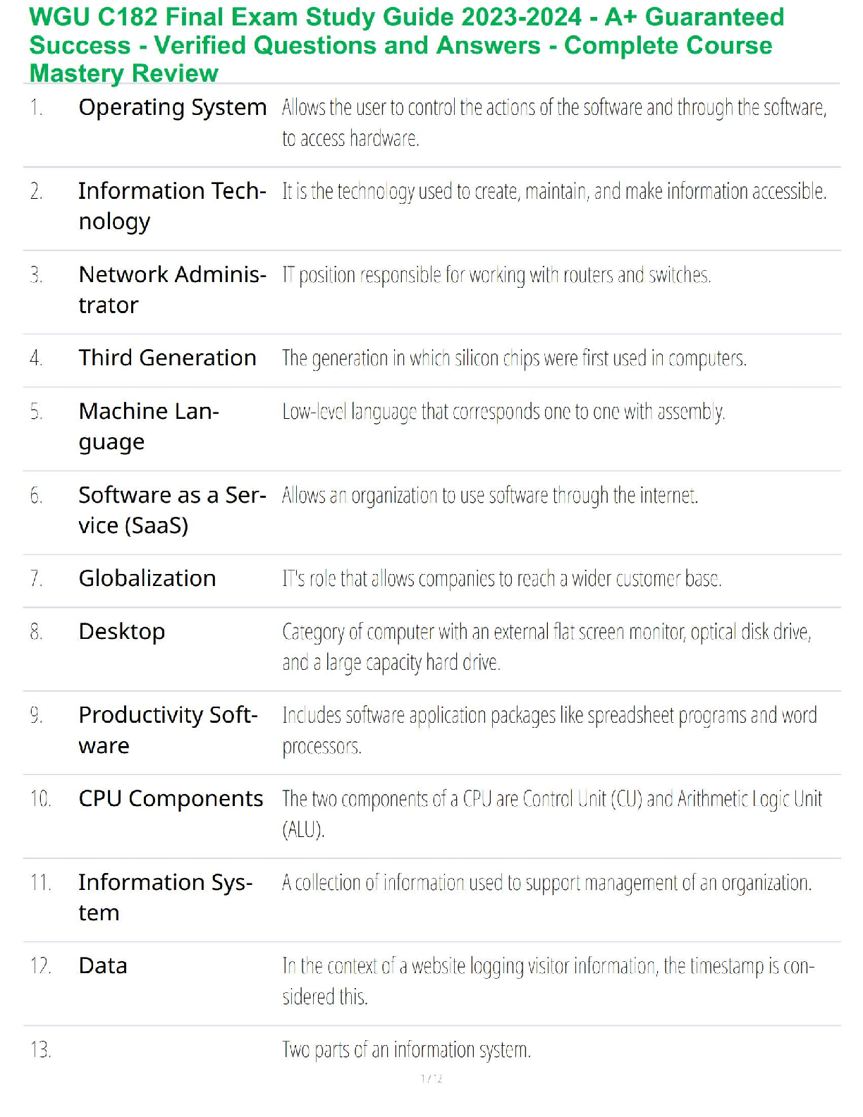 Critical Thinking > QUESTIONS & ANSWERS > WGU C182 Final Exam Study Guide 2023-2024 - A+ Guaranteed Success - Verified Questions and Answers - Complete Course Mastery Review