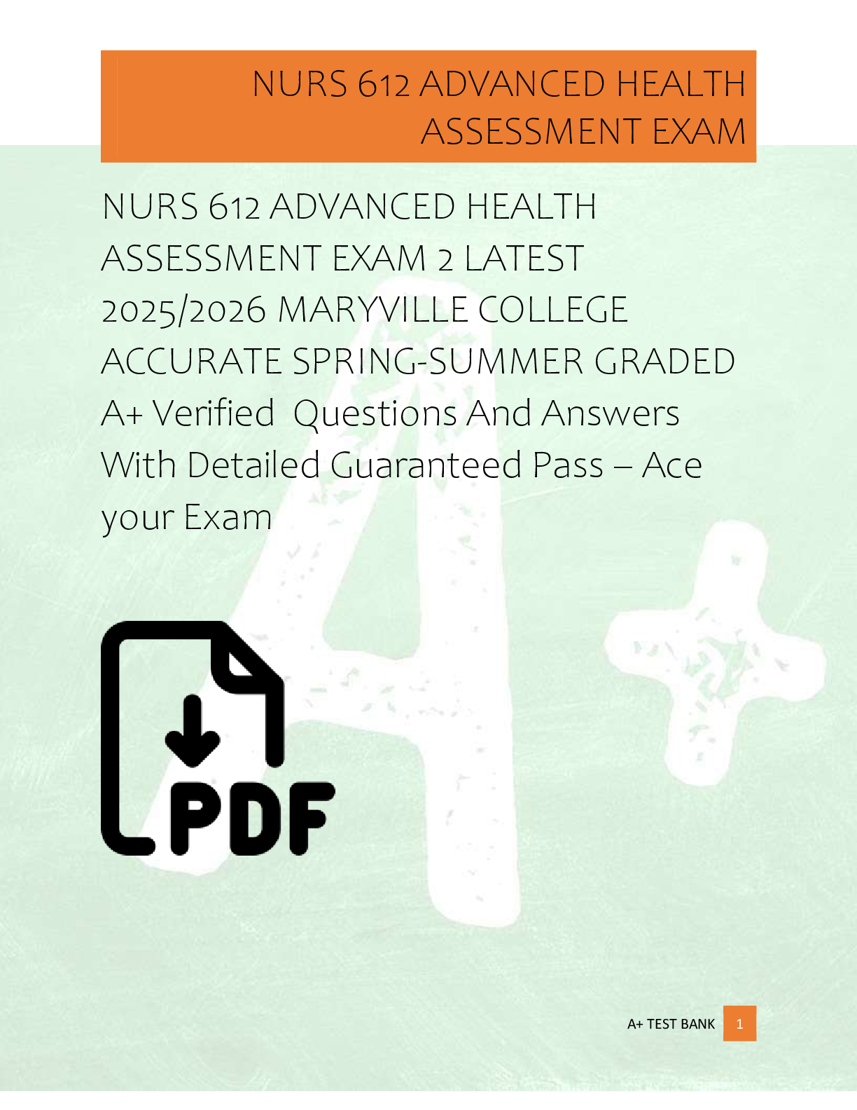 *NURSING > EXAM > NURS 612 ADVANCED HEALTH ASSESSMENT EXAM 2 LATEST 2025/2026 MARYVILLE COLLEGE ACCURATE SPRING-SUMMER GRADED A+ Verified Questions And Answers With Detailed Guaranteed Pass – Ace your Exam