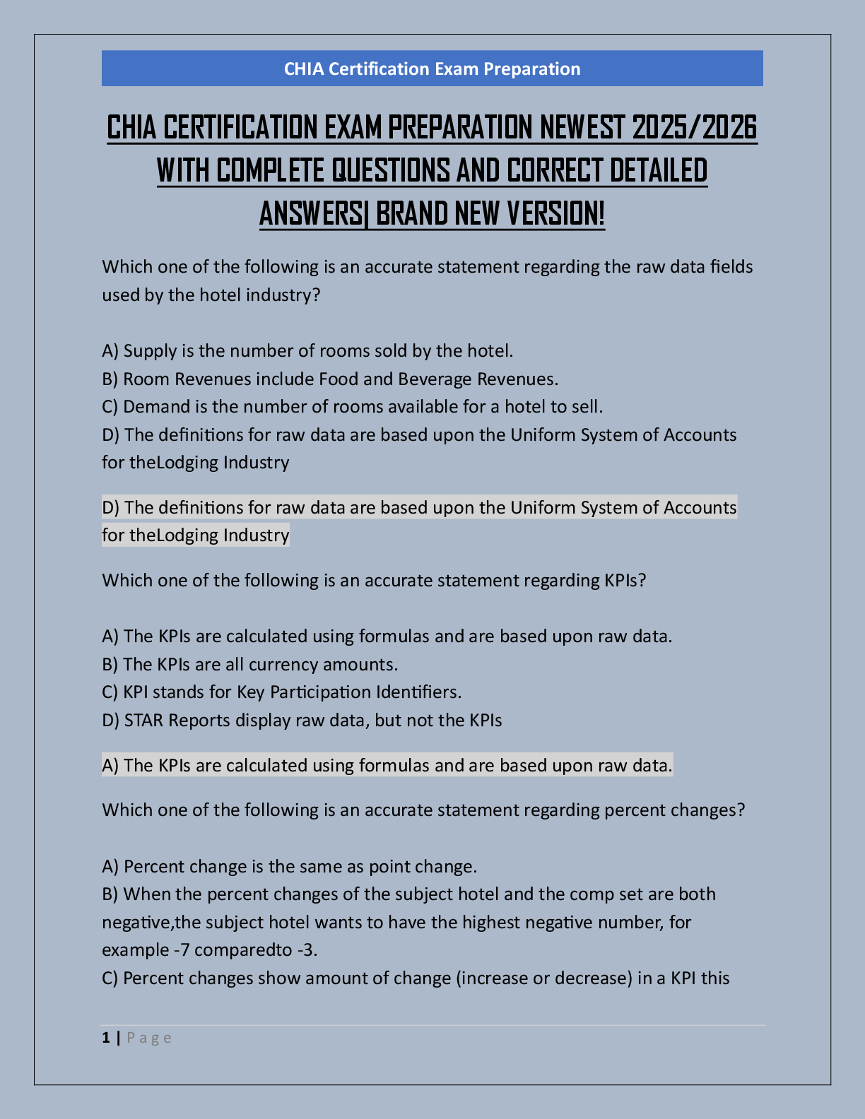 Business Management > EXAM > CHIA CERTIFICATION EXAM PREPARATION NEWEST 2025/2026 WITH COMPLETE QUESTIONS AND CORRECT DETAILED ANSWERS| BRAND NEW VERSION!