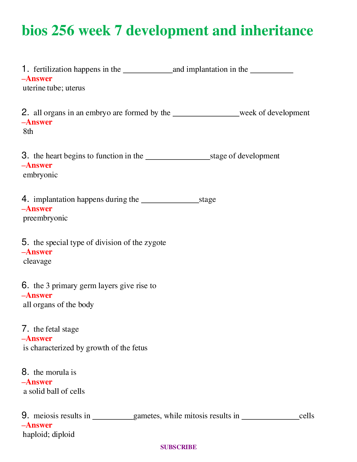*NURSING > EXAM > BIOS 256 Week 7 Development and Inheritance Questions and Answers (Verified Answers)
