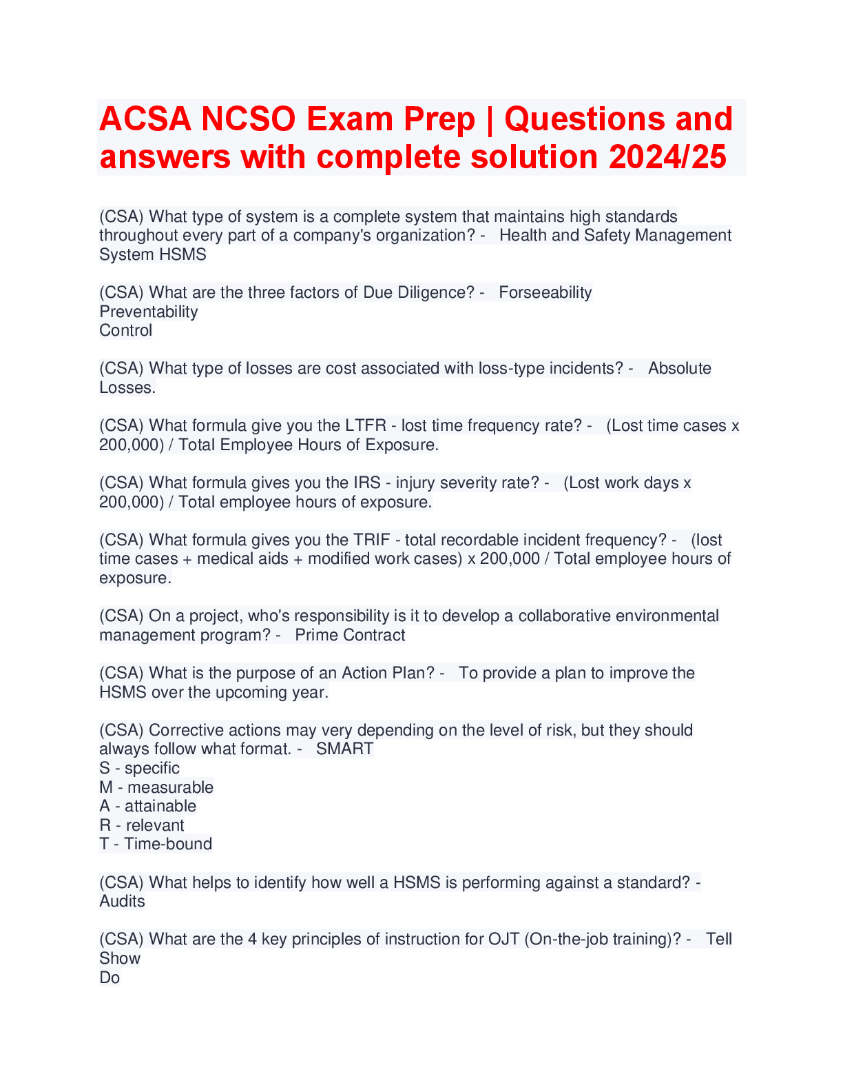 *NURSING > QUESTIONS and ANSWERS > ACSA NCSO Exam Prep | Questions and answers with complete solution 2024/25