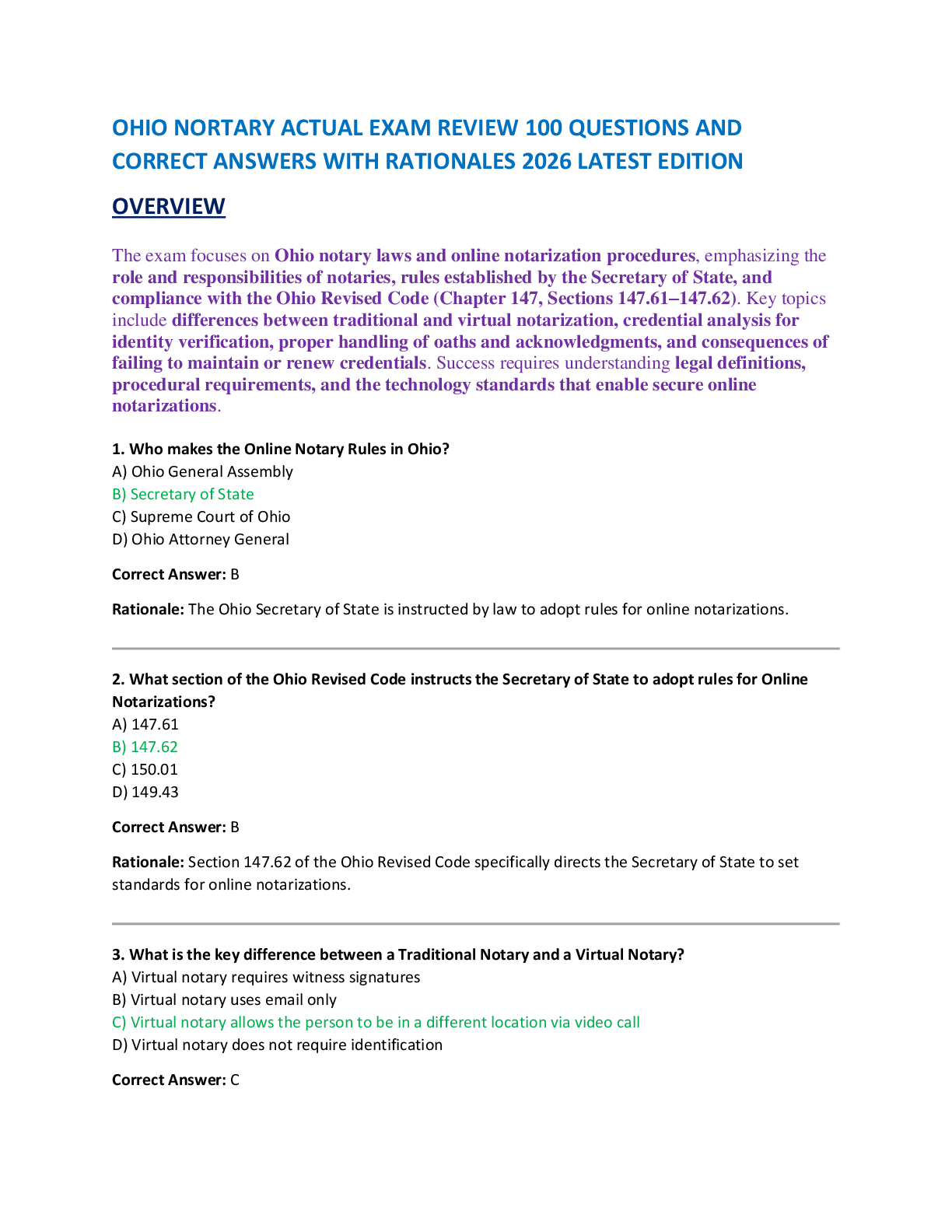 Enterprise Law > EXAM REVIEW > OHIO NORTARY ACTUAL EXAM REVIEW 100 QUESTIONS AND CORRECT ANSWERS WITH RATIONALES 2026 LATEST EDITION