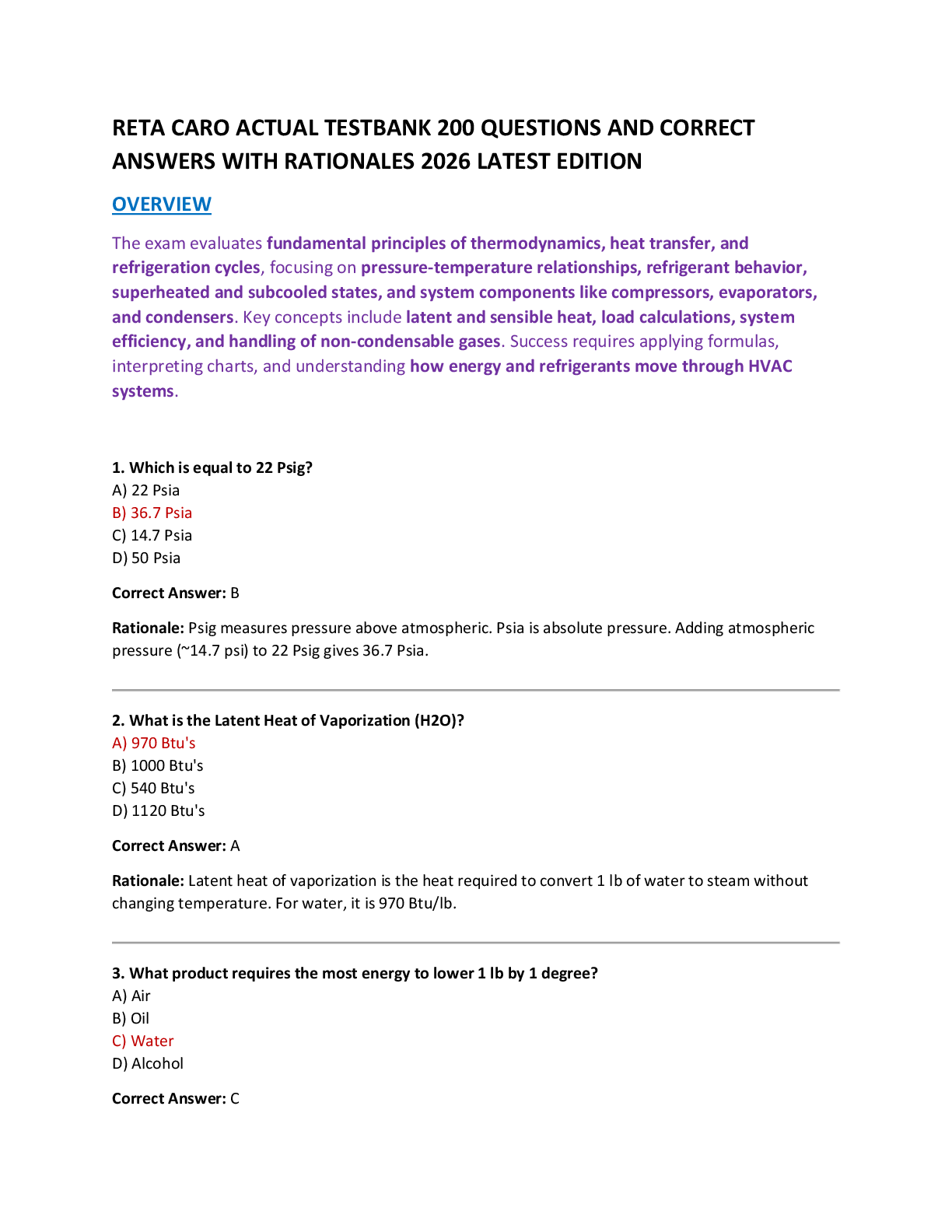 Thermodynamics > EXAM REVIEW > RETA CARO ACTUAL TESTBANK 200 QUESTIONS AND CORRECT ANSWERS WITH RATIONALES 2026 LATEST EDITION