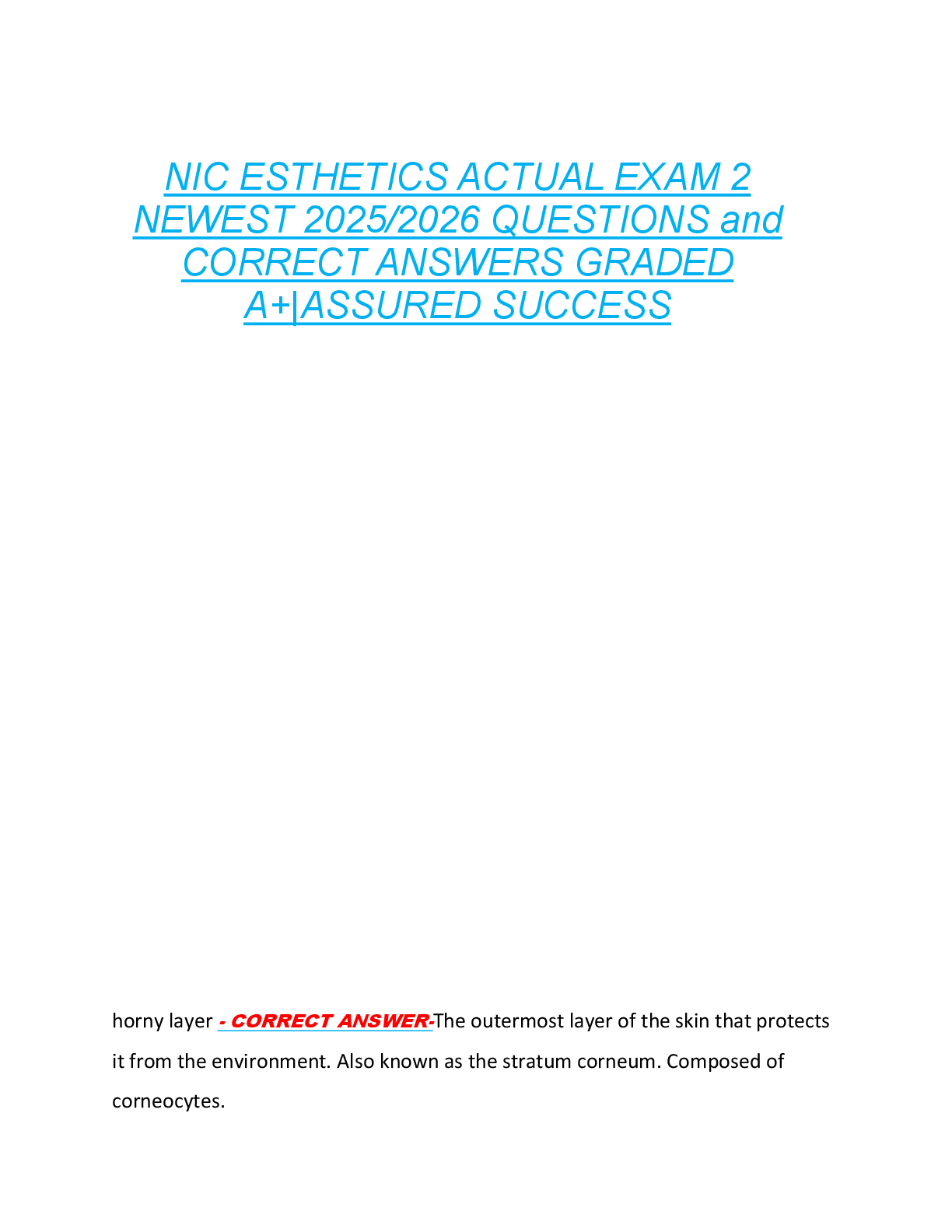 *NURSING > EXAM > NIC ESTHETICS ACTUAL EXAM 2 NEWEST 2025/2026 QUESTIONS and CORRECT ANSWERS GRADED A+|ASSURED SUCCESS
