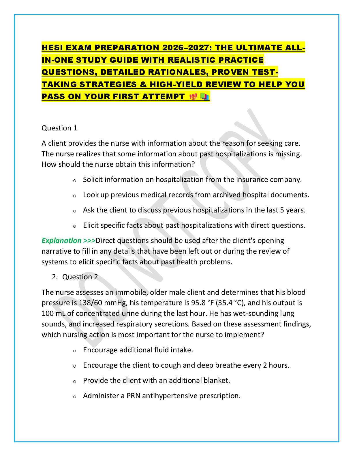 *NURSINGHESI  > HESI EXAM PREPARATION 2026–2027: THE ULTIMATE ALL-IN-ONE STUDY GUIDE WITH REALISTIC PRACTICE QUESTIONS, DETAILED RATIONALES, PROVEN TEST-TAKING STRATEGIES & HIGH-YIELD REVIEW TO HELP YOU PASS ON YOUR FIRST ATTEMPT 💯