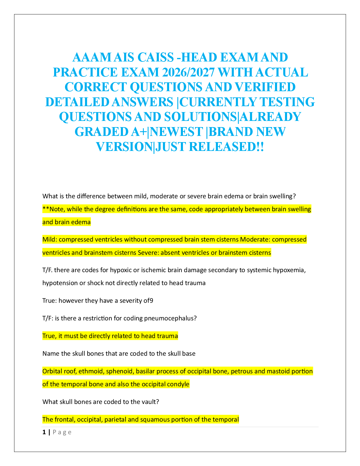 Health Care > EXAM > AAAM AIS CAISS -HEAD EXAM AND PRACTICE EXAM 2026/2027