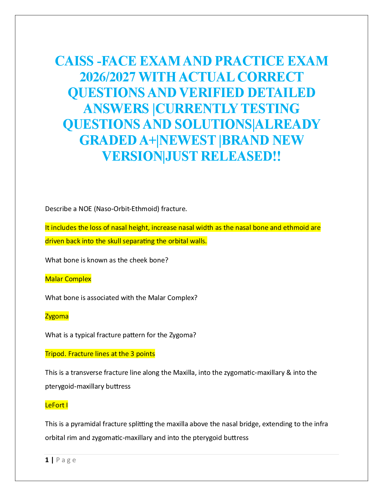 Health Care > EXAM > CAISS -FACE EXAM AND PRACTICE EXAM 2026/2027