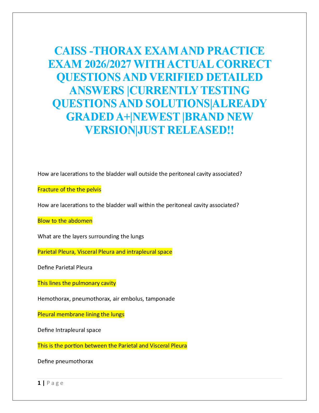 Health Care > EXAM > CAISS -THORAX EXAM AND PRACTICE EXAM 2026/2027