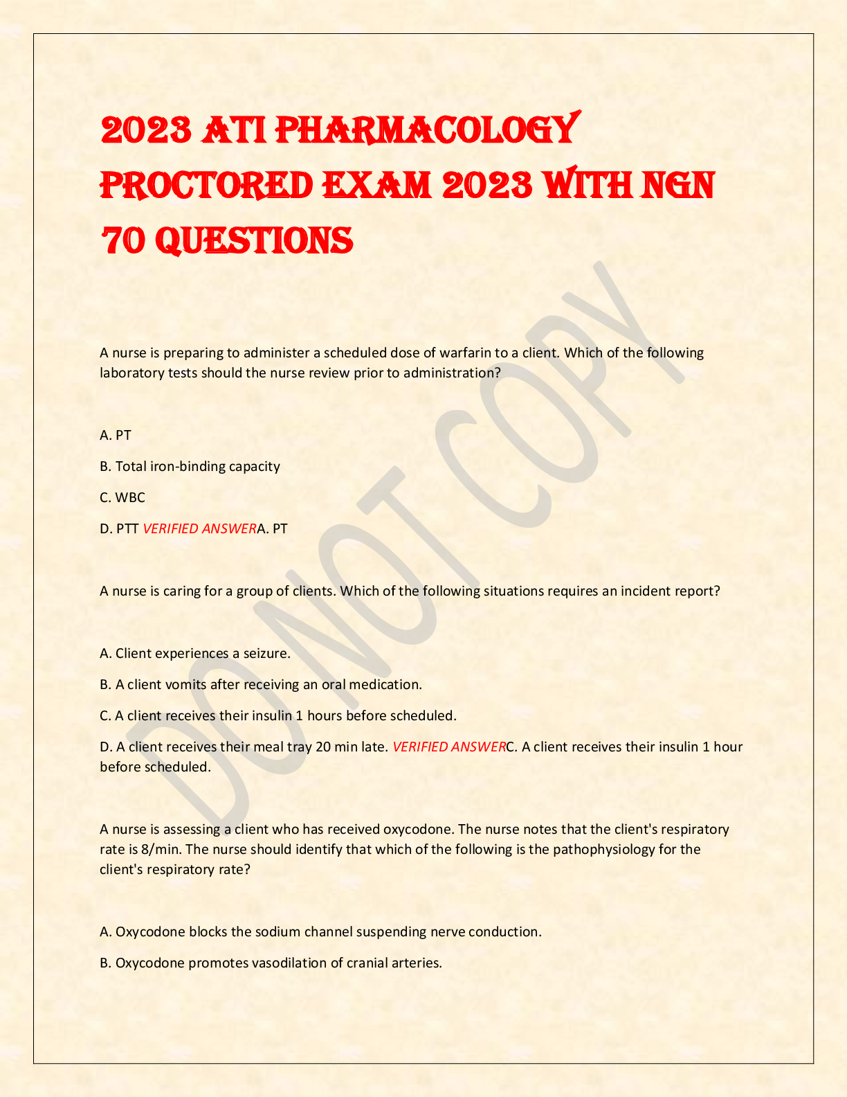 *NURSING > EXAM > 2023 ATI PHARMACOLOGY PROCTORED EXAM 2023 WITH NGN 70 QUESTIONS