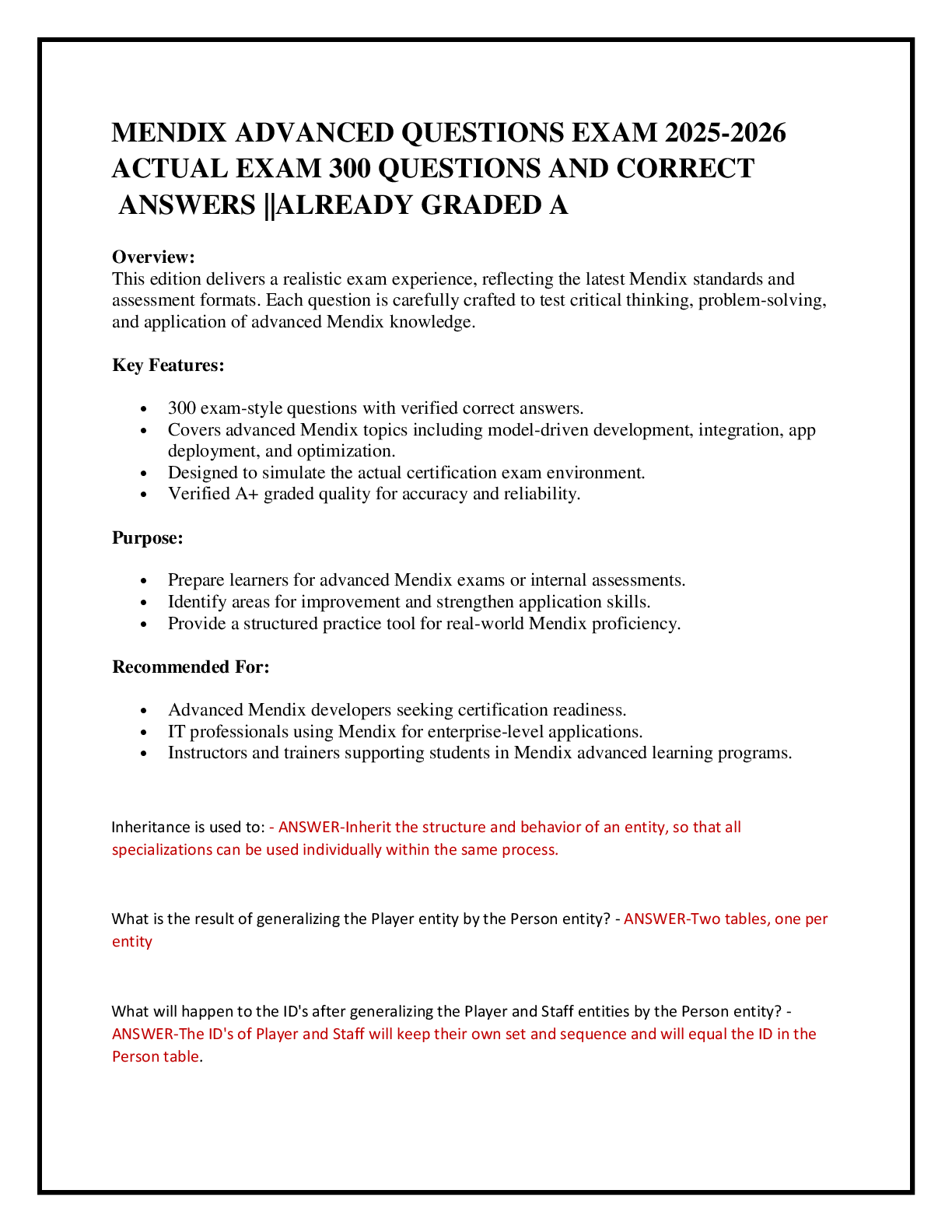 *NURSING > EXAM > MENDIX ADVANCED QUESTIONS EXAM 2025-2026 ACTUAL EXAM 300 QUESTIONS AND CORRECT ANSWERS ||ALREADY GRADED A