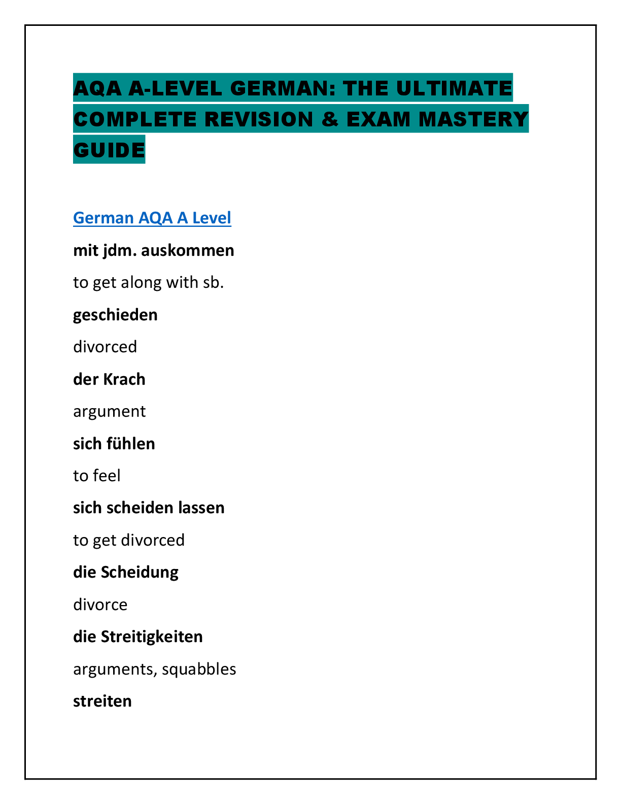 *NURSING > AQA > AQA A-LEVEL GERMAN: THE ULTIMATE COMPLETE REVISION & EXAM MASTERY GUIDE
