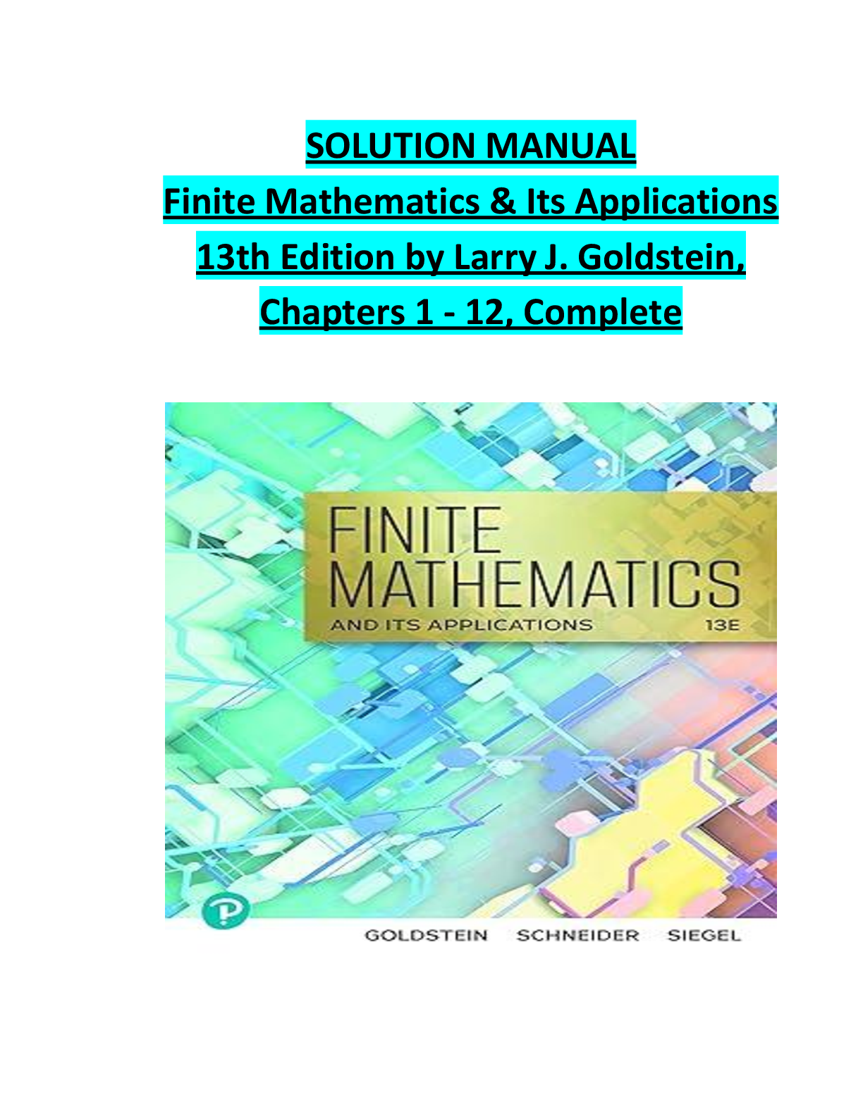 Mathematics > SOLUTIONS MANUAL > Solution Manual for Finite Mathematics & Its Applications, 13th Edition by Larry J. Goldstein, David I. Schneider, Martha J. Siegel & Jill Simmons | ISBN: 9780137901868 | Complete Chapters 1-12 | Verified Step-by-Step Solutions | Downloadable PDF