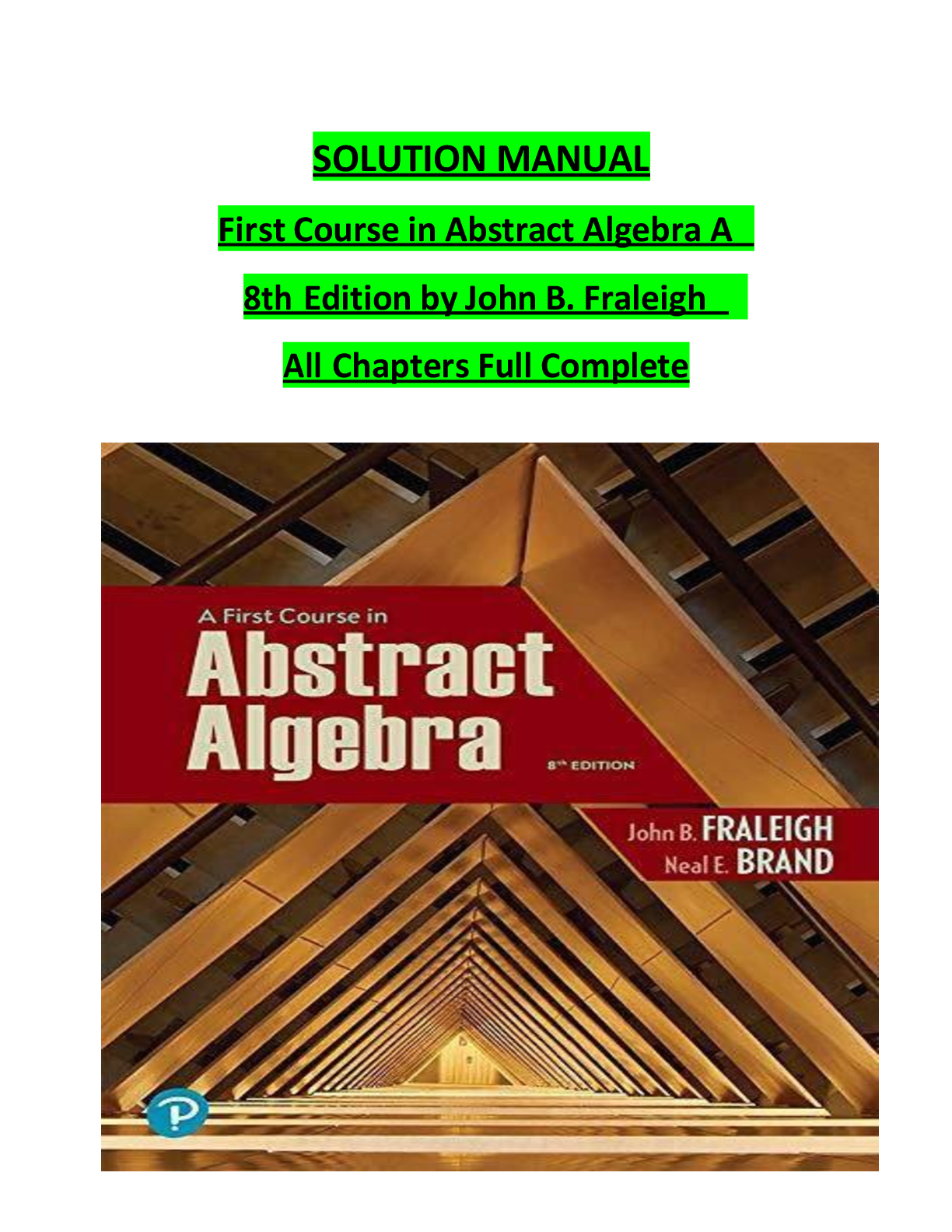 Mathematics > SOLUTIONS MANUAL > Solution Manual for A First Course in Abstract Algebra, 8th Edition by John B. Fraleigh & Neal Brand | ISBN: 9780134689609 | Complete Chapters | Verified Step-by-Step Proofs | Downloadable PDF