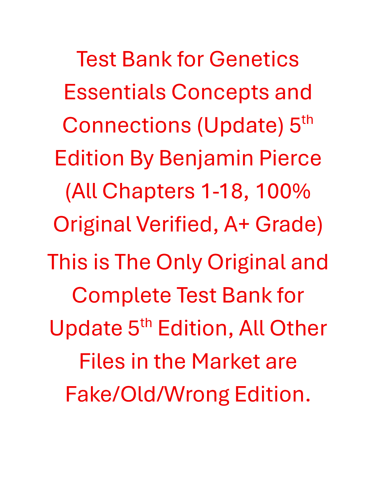BioChemistry > TEST BANKS > Test Bank Genetics Essentials Concepts and Connections (Update) 5th Edition By Benjamin Pierce