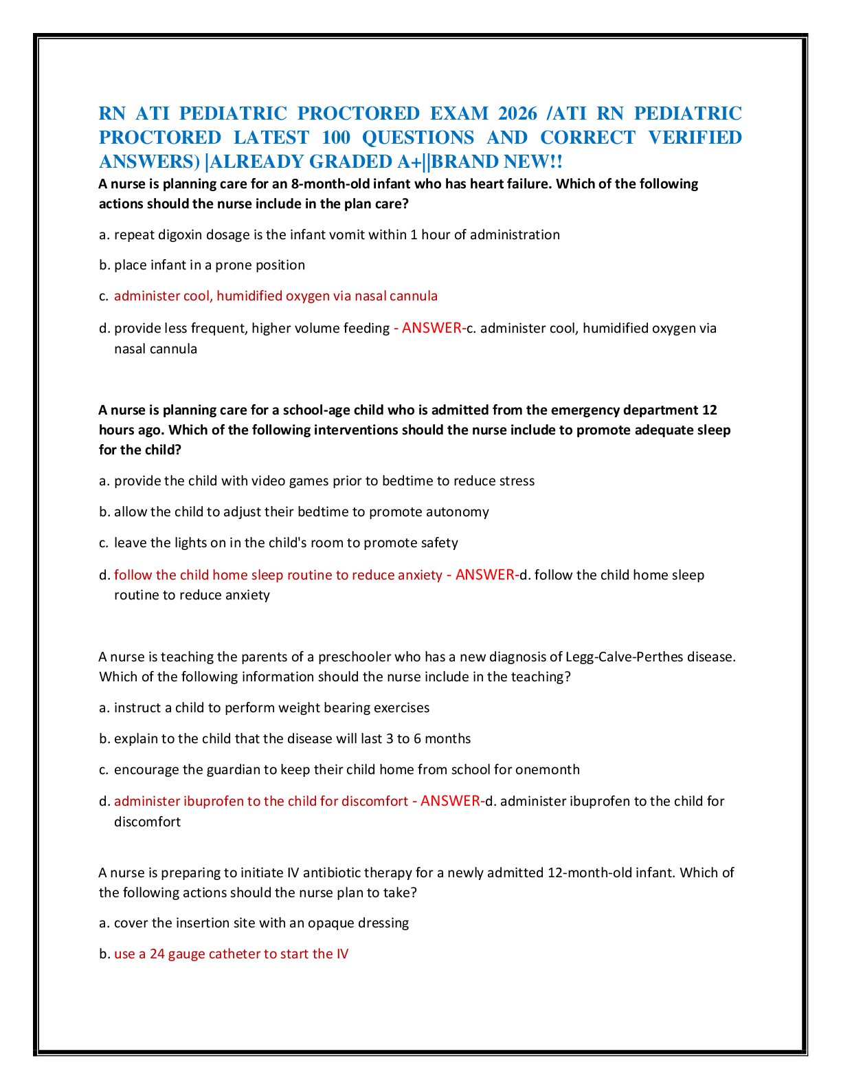 *NURSING > EXAM > RN ATI PEDIATRIC PROCTORED EXAM 2026 /ATI RN PEDIATRIC PROCTORED LATEST 100 QUESTIONS AND CORRECT VERIFIED ANSWERS) |ALREADY GRADED A+||BRAND NEW!!