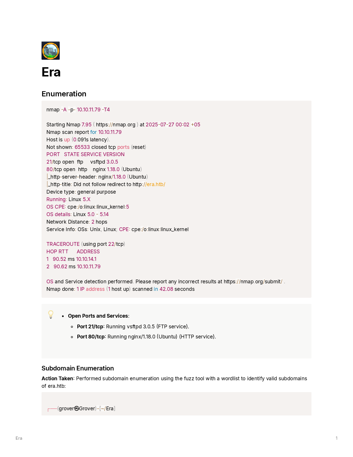 ProgrammingGUIDELINES  > CYBER 2025 Era Enumeration nmap -A -p- 10.10.11.79 -T4