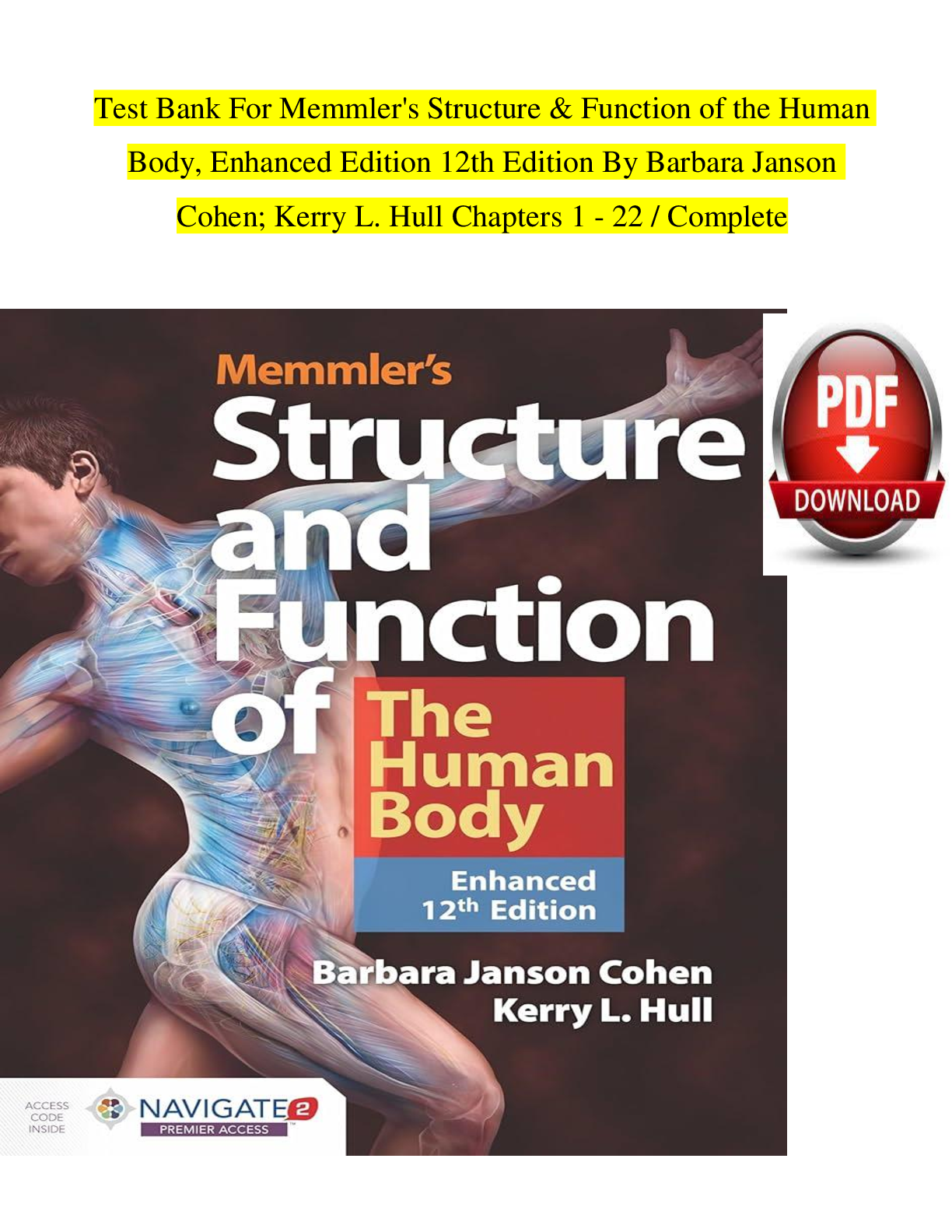 Human Anatomy and Physiology > TEST BANKS > Test Bank for Memmler's Structure & Function of the Human Body, Enhanced 12th Edition by Cohen & Hull | ISBN: 9781284268317 | All Chapters 1-22 Complete | Verified Questions & Answers | Downloadable PDF