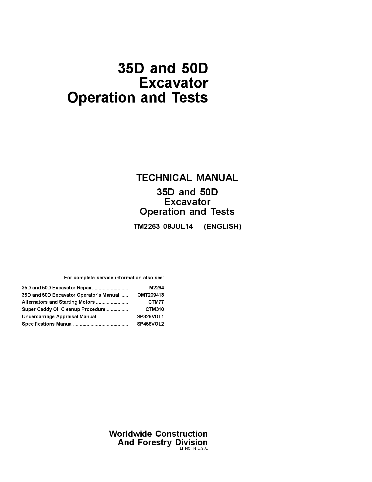 Education > Manual > JOHN DEERE 35D AND 50D EXCAVATOR TECHNICAL OPERATION & TEST PARTS MANUAL