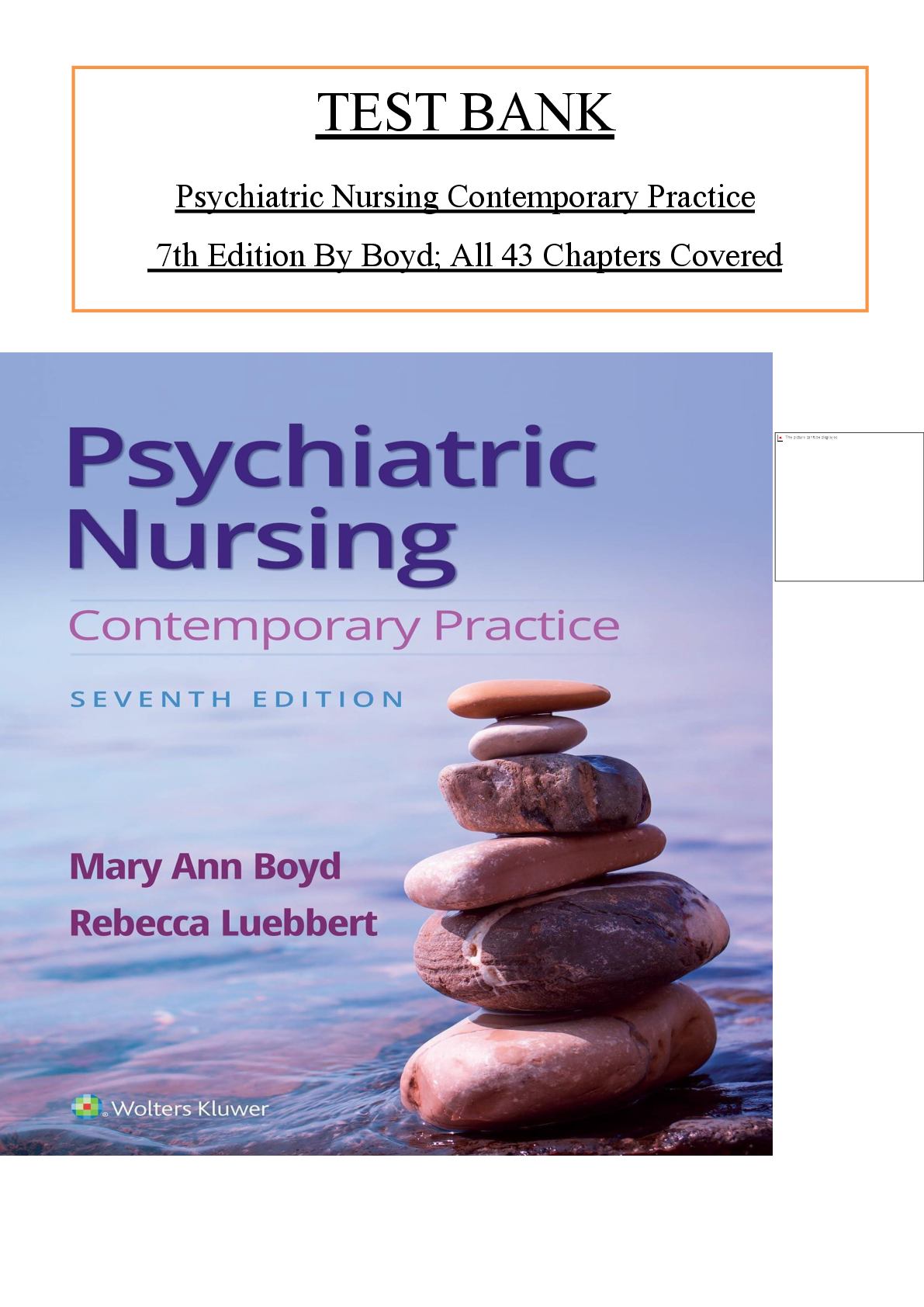 Psychiatric Nursing > TEST BANKS > Test Bank for Psychiatric Nursing: Contemporary Practice, 7th Edition by Mary Ann Boyd & Rebecca Luebbert | ISBN: 9781975161187 | Verified Chapters 1-43 | NCLEX-Style Q&A | Downloadable PDF