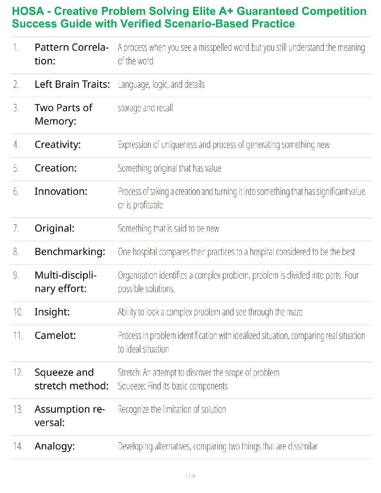 Critical Thinking > STUDY GUIDE > HOSA - Creative Problem Solving Elite A+ Guaranteed Competition Success Guide with Verified Scenario-Based Practice