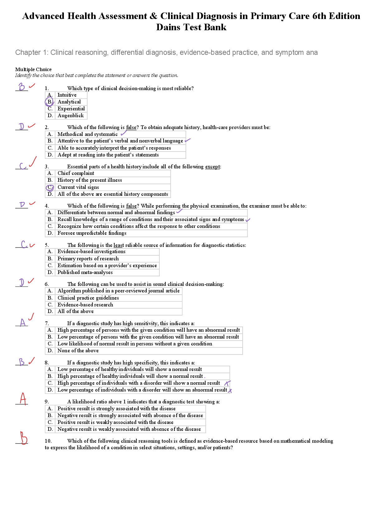 Education > TEST BANKS > Advanced Health Assessment & Clinical Diagnosis in Primary Care 6th Edition by Joy Test bank